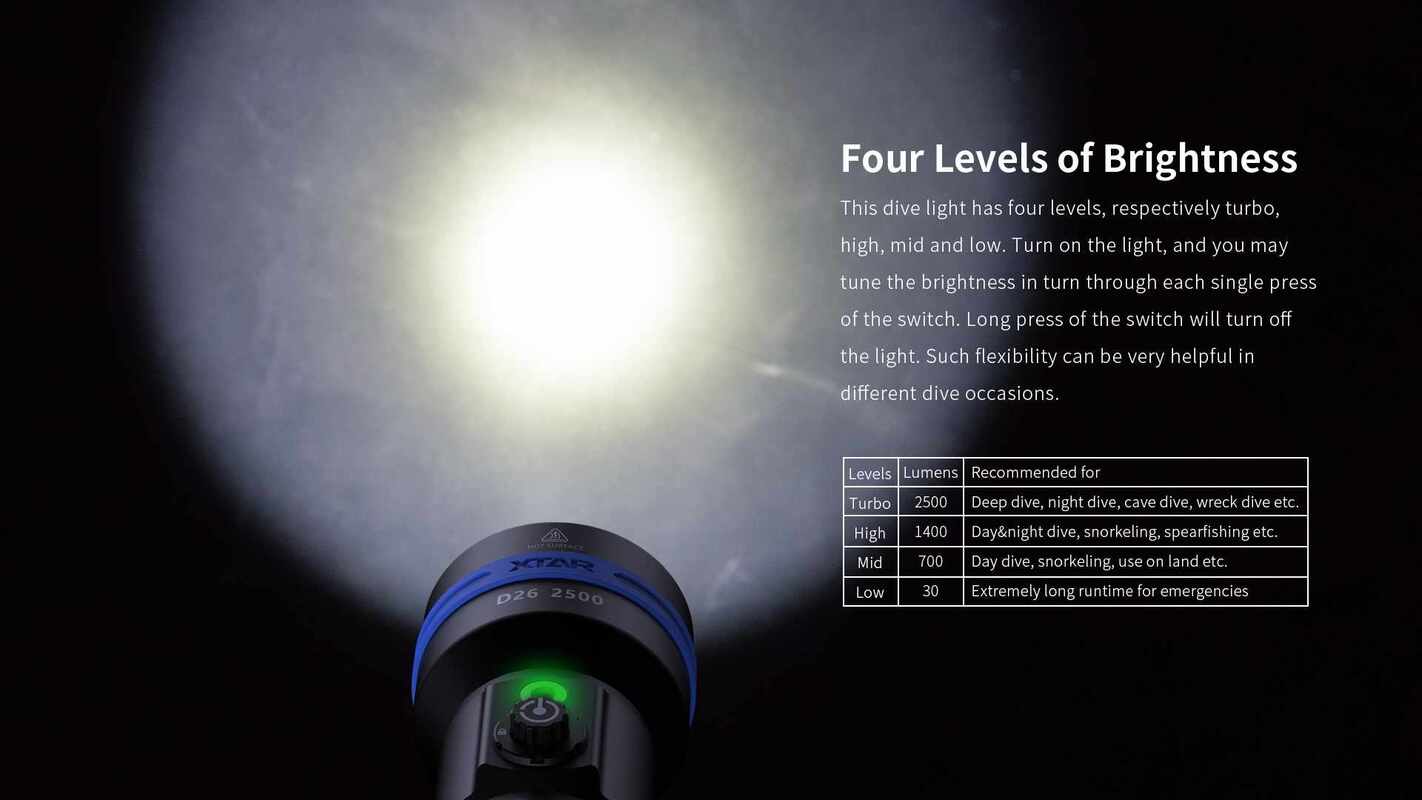 La linterna de buceo XTAR D26 2500 Lumen es una opción ideal para buceadores que buscan rendimiento, fiabilidad y confianza bajo el agua.