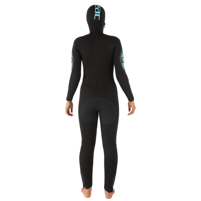 Las zonas de mayor desgaste cuentan con refuerzos antiabrasión Supratex en hombros, rodillas y zona lumbar, lo que lo hace especialmente resistente y adecuado tanto para buceadoras recreativas como para uso intensivo en centros de buceo.